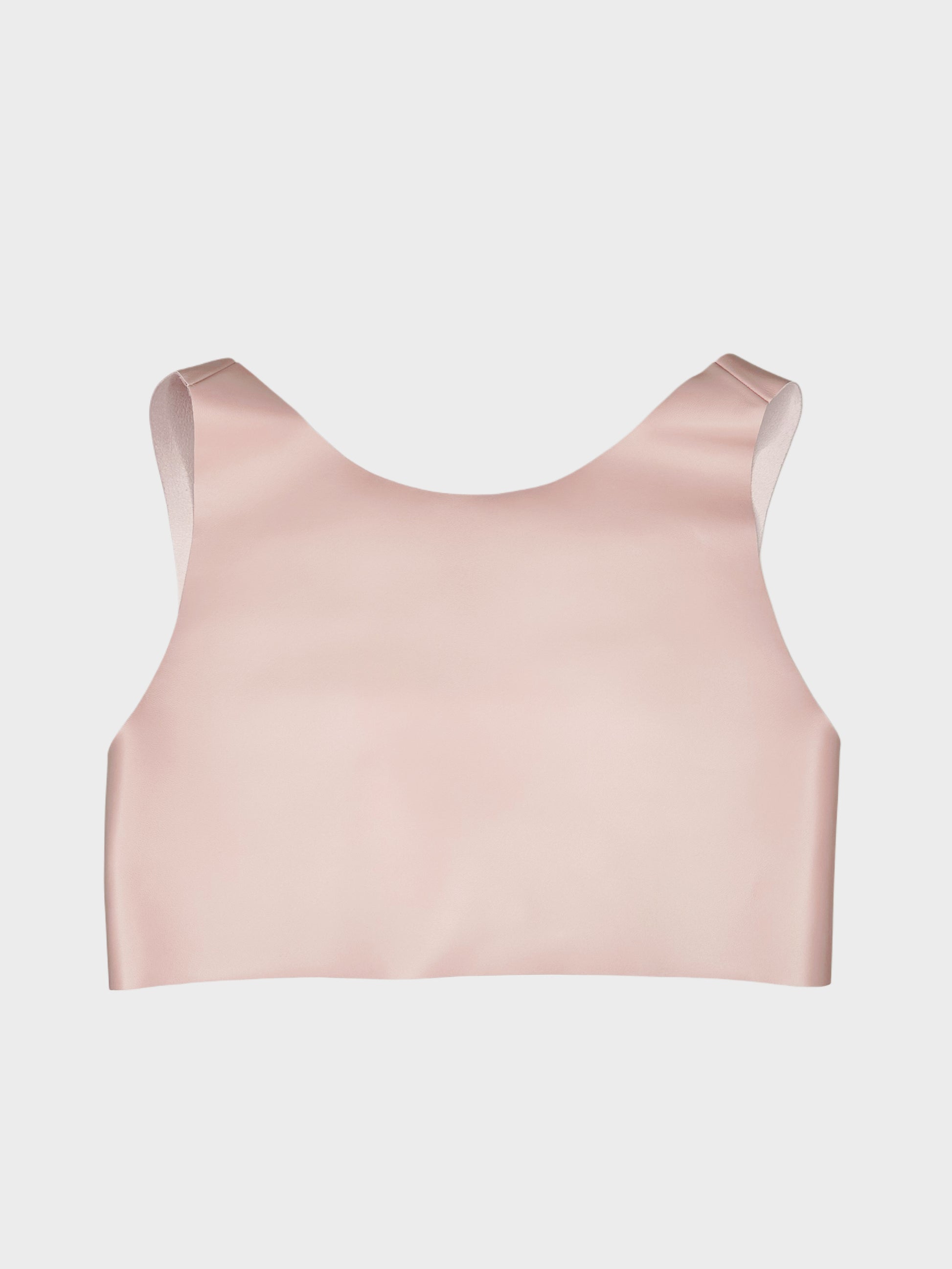 Top crop realizzato interamente in pelle, in nappa. Le linee pulite e super minimal tagliano il top sotto il seno, scollo rotondo, senza maniche, orlo senza cucitura e scollo posteriore vertiginoso con chiusura bottone a pressione.