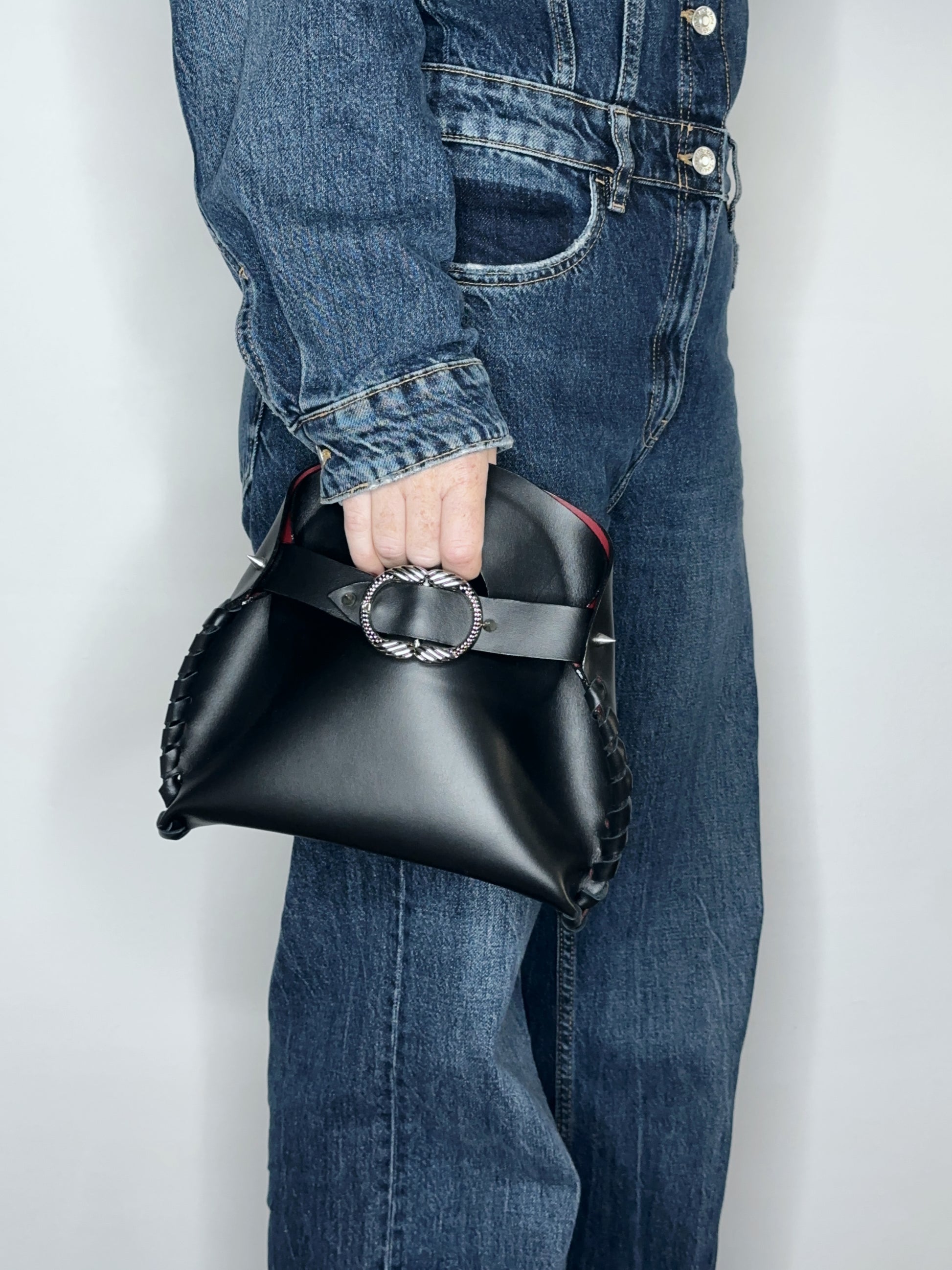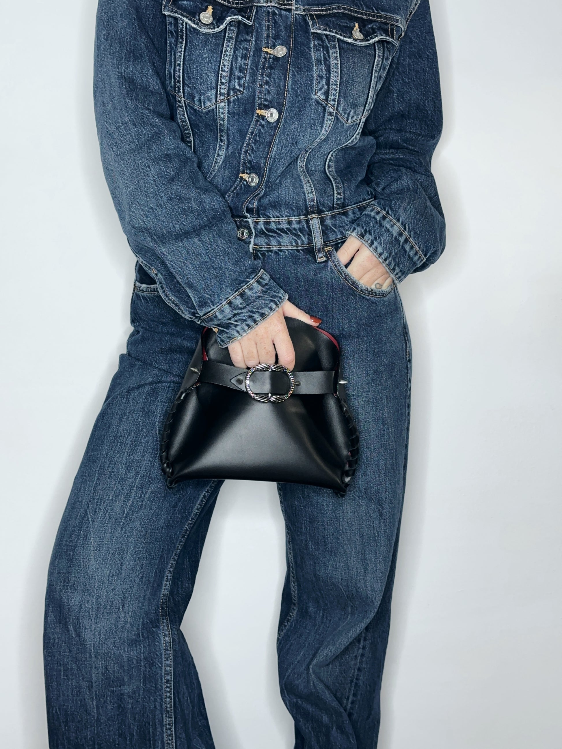 La Mini Madeleine Bag è una versione mini dell'iconica Madeleine Bag ma fornita di catena gioiello da indossare come cross body bag. Dalla forma squadrata, personalizzata con una chiusura gioiello con bottone a calamita. Il manico rigido sostiene la forma della borsa lasciata aperta e chiusa. Linea pulita e dimensioni mini ma capienti per gli interni spogli.