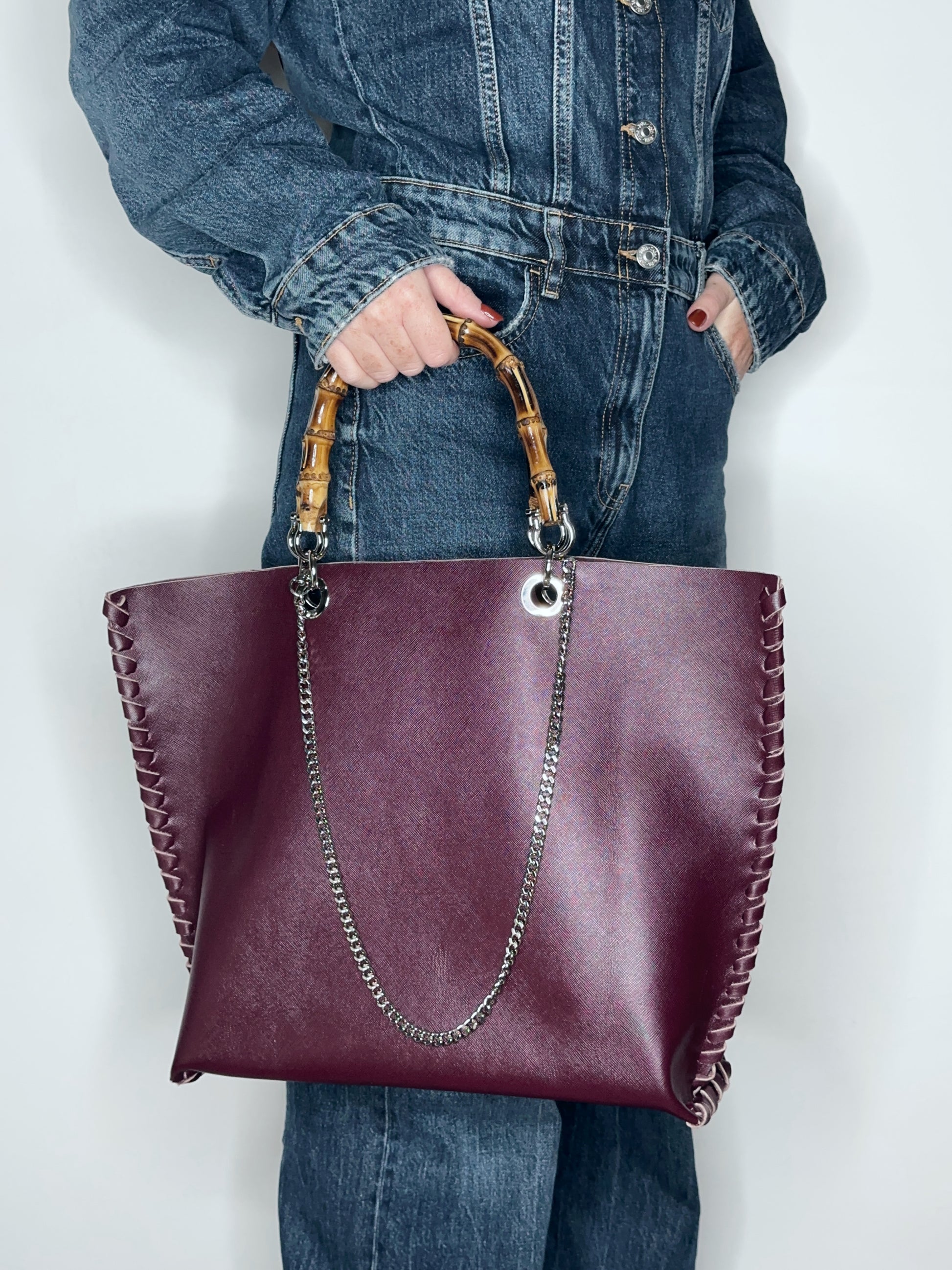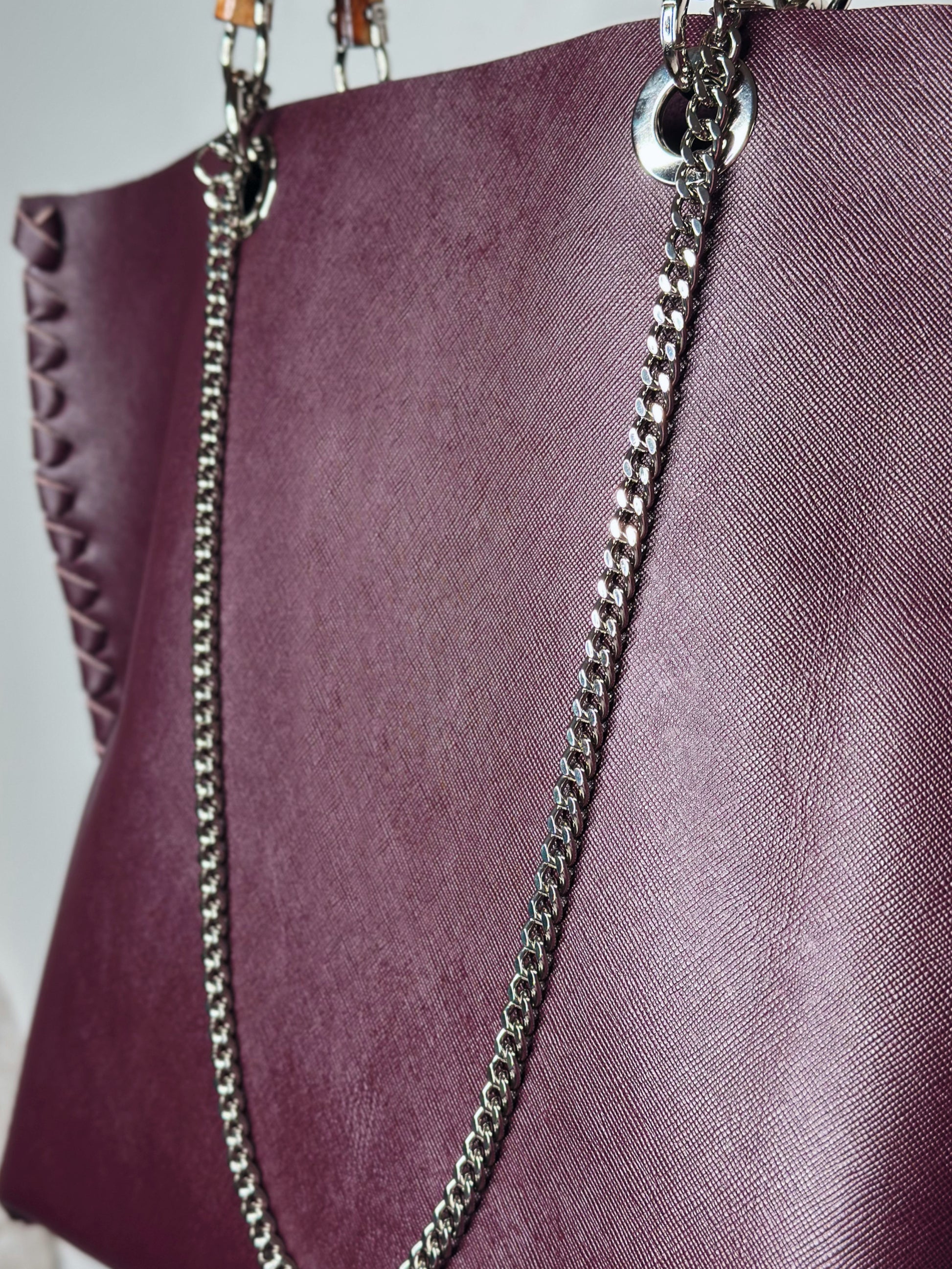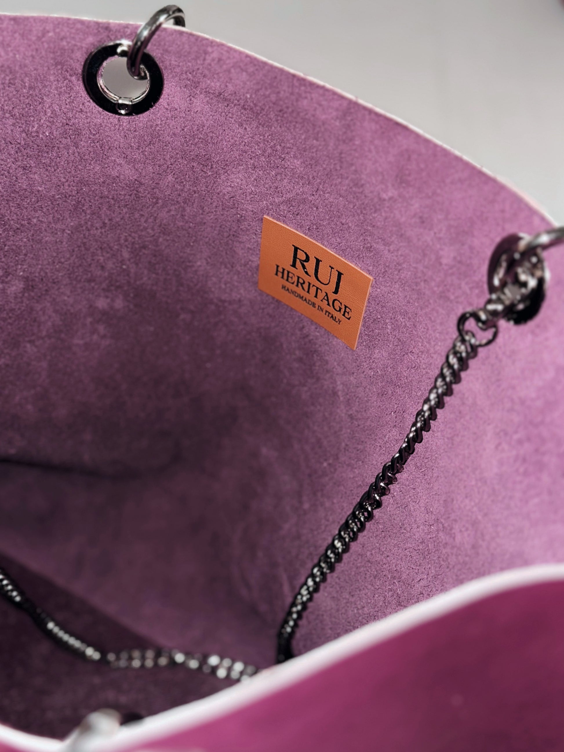 La Picnic Bag è la maxi tote bag di Ruj H. pensata per contenere tutto l’indispensabile per raggiungere la missione della giornata; perfetta per il lavoro, per i weekend fuori porta e le giornate all’aria aperta. Questa versione è realizzata in pelle saffiano con gli interni sfoderati e provvista di catena per indossarla più comodamente a spalla. Con lei è impossibile dimenticarsi qualcosa, entra tutto!